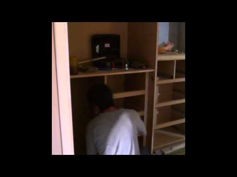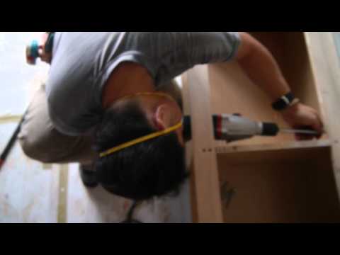 3. 將櫃體嵌上,接著在原本打上木心板處,用外六角螺絲固定住。這樣櫃體吊掛就完成了。